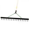 The 16P Poly Rake consists of a 650mm polyethylene head and a hardwood handle. The heads have 16 tines available in a standard or a short tine option and the rakes are available with either a 60″ or 72″ handle.