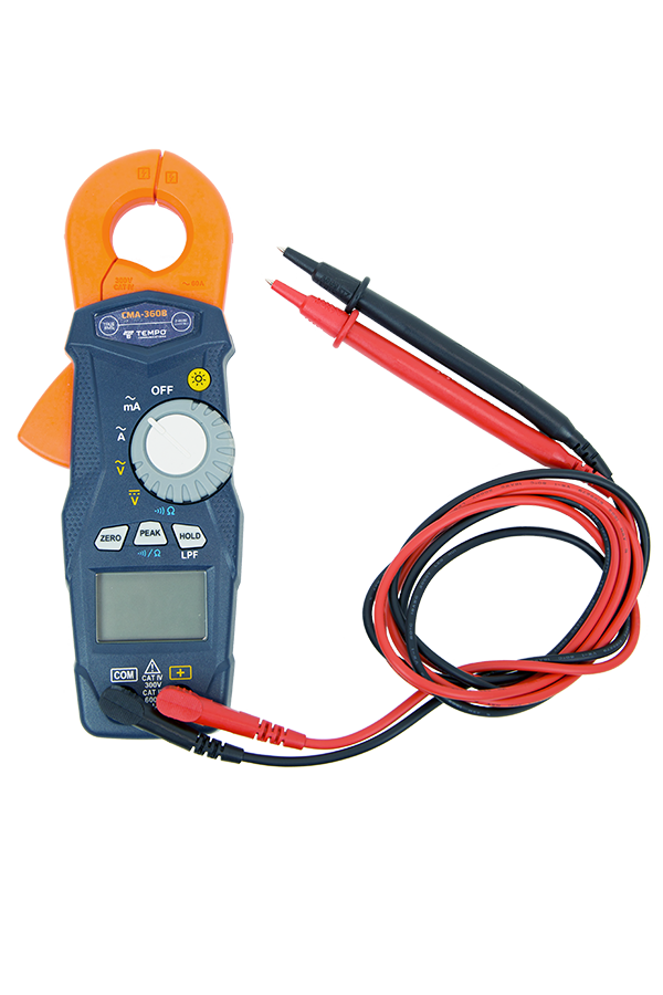 True RMS can measure alternating current (ac) or ac voltage. The CMA-360B milliamp meter gives the user the ability to obtain accurate results in “dirty” power conditions, like measuring the current draw of a pump motor. The combination of the True RMS with resistance measurement up to 600k Ohms, and the current measurement resolution to 1/1000th of a milliamp (one microamp), provides the ability to find troubles other meters may miss.